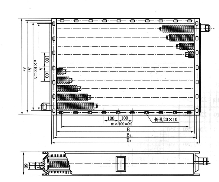 例題:SRZ-15×10D。即表示一臺SRZ型繞片式散熱器,其通風(fēng)正截面的長為1505毫米,寬1001毫米,大型,片距為5毫米。